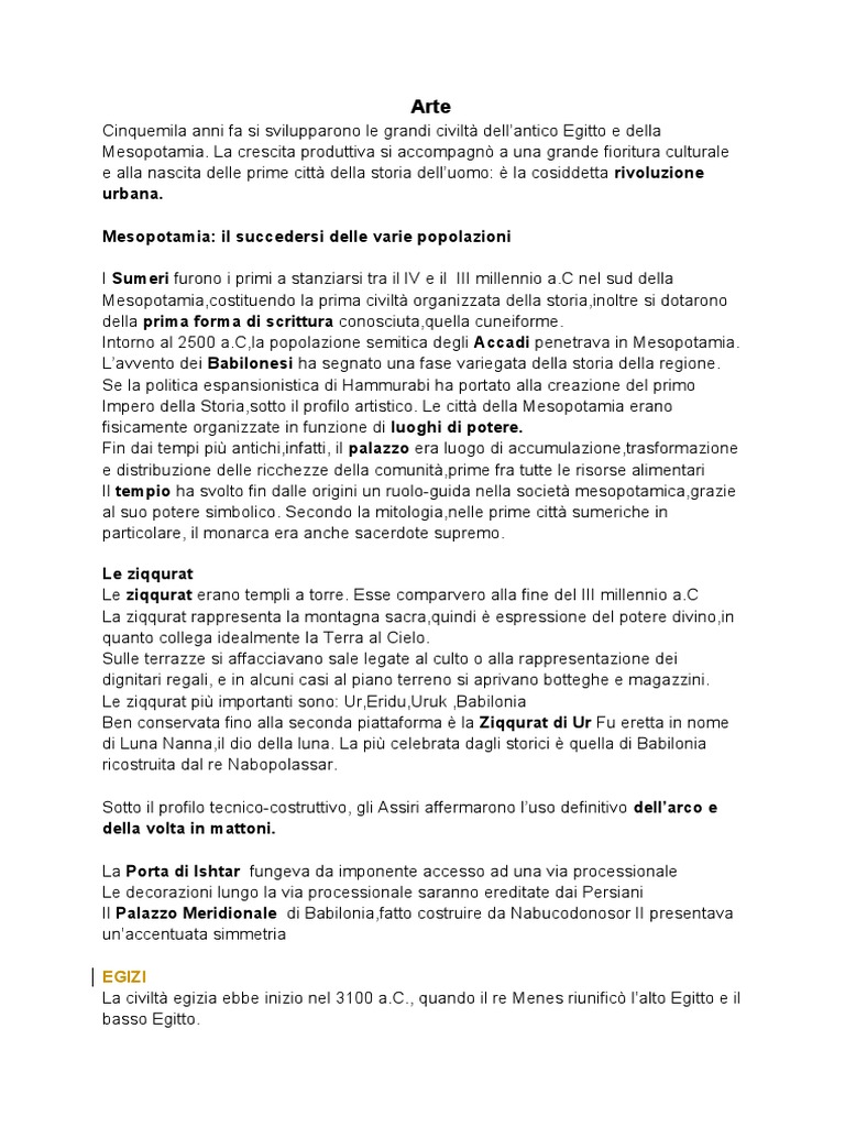 Impero della Storia,sotto il profilo artistico. Le città della Mesopotamia erano