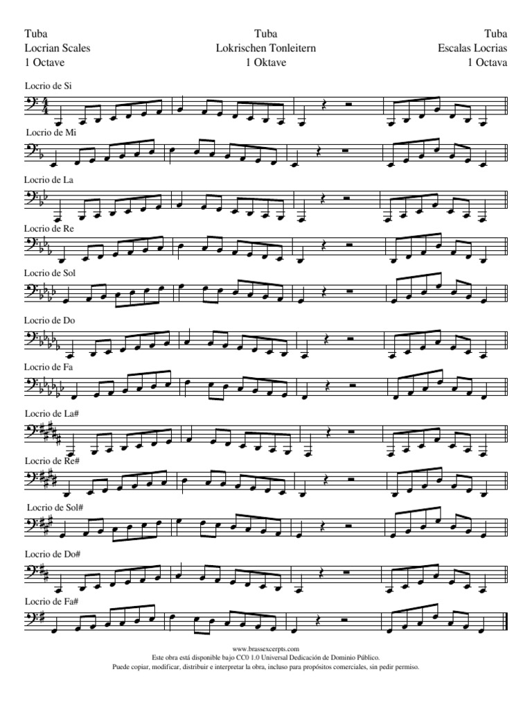 Locrian Scales Lokrischen Tonleitern Escalas Locrias
