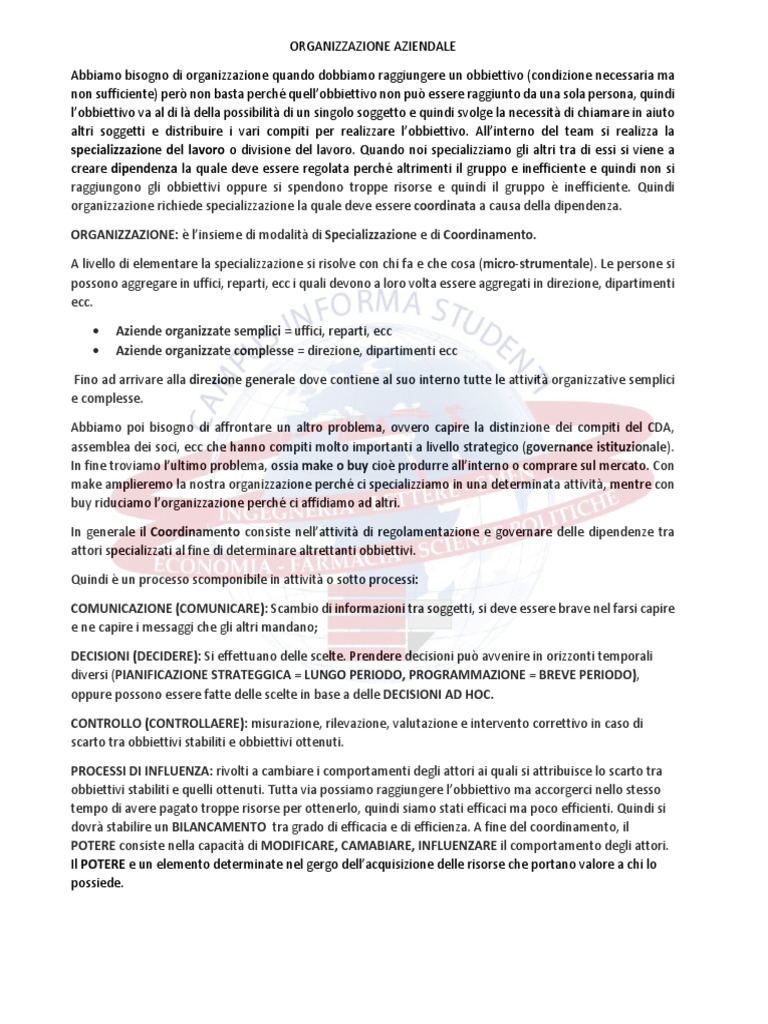 ORGANIZZAZIONE: è l’insieme di modalità di Specializzazione e di Coordinamento.