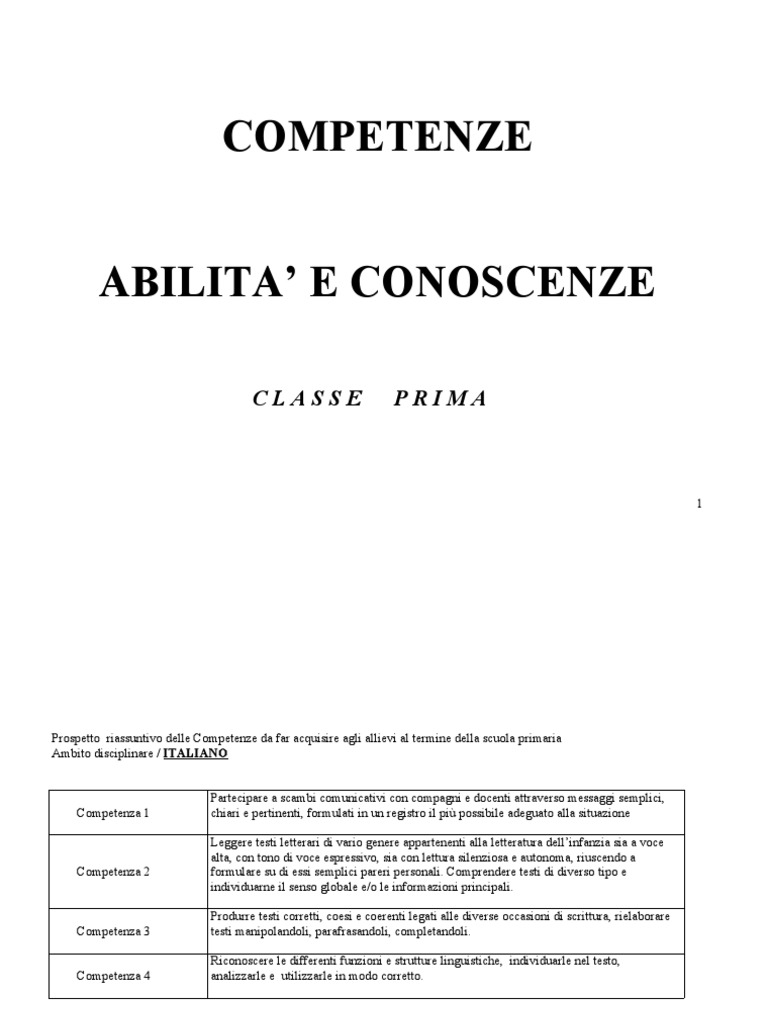 Prospetto riassuntivo delle Competenze da far acquisire agli allievi al termine della scuola primaria