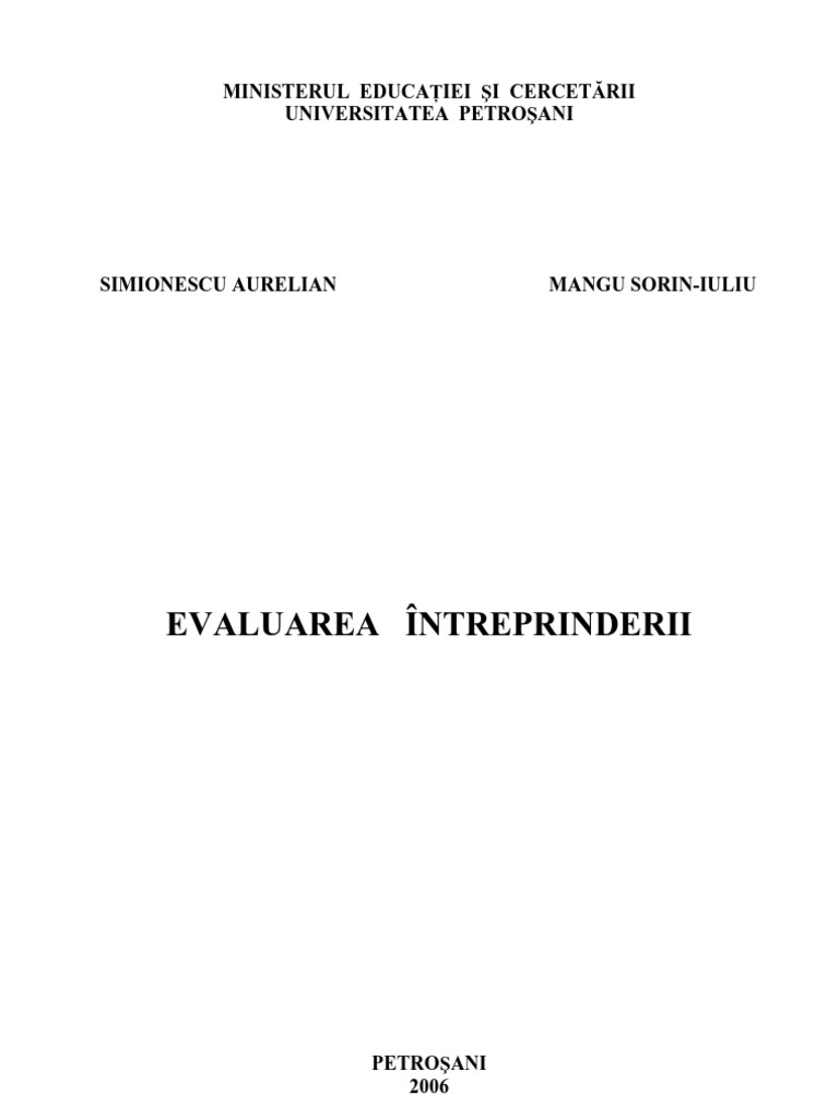 14. Ifnescu, Aurel; Robu, Vasile; Anghel, Ion; Tuu, Anca – Evaluarea întreprinderii,