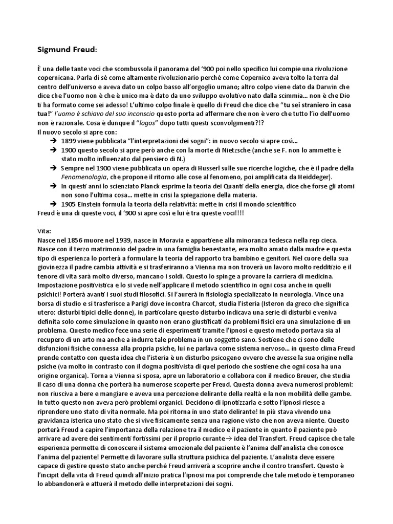 arrivare ad avere dei sentimenti fortissimi per il proprio curante idea del Transfert. Freud capisce che tale