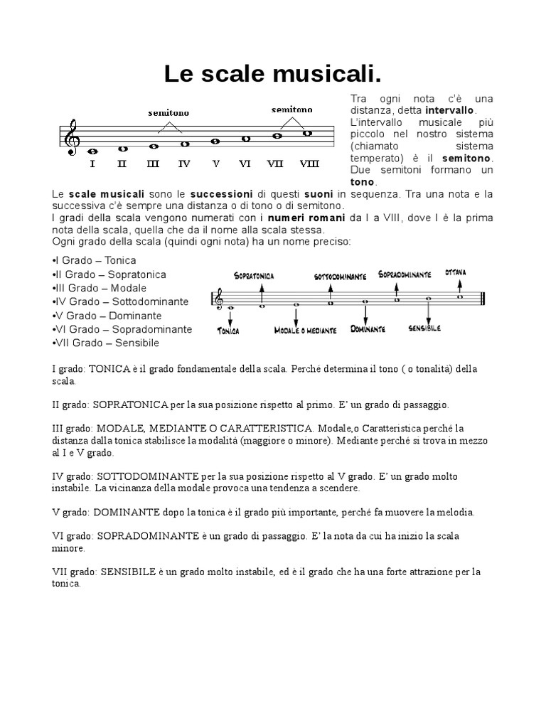 Le scale musicali sono le successioni di questi suoni in sequenza. Tra una nota e la
