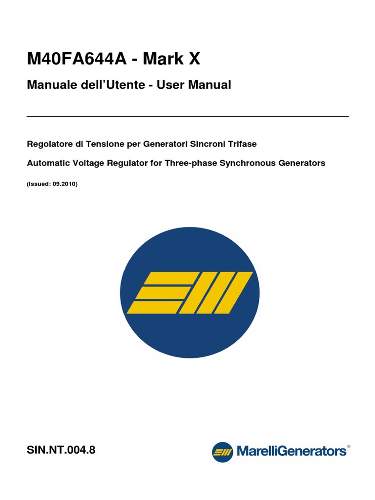 Il regolatore di tensione è internamente provvisto di filtro The AVR is provided with an internal Electromagnetic