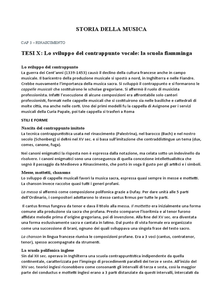 TESI X: Lo sviluppo del contrappunto vocale: la scuola fiamminga