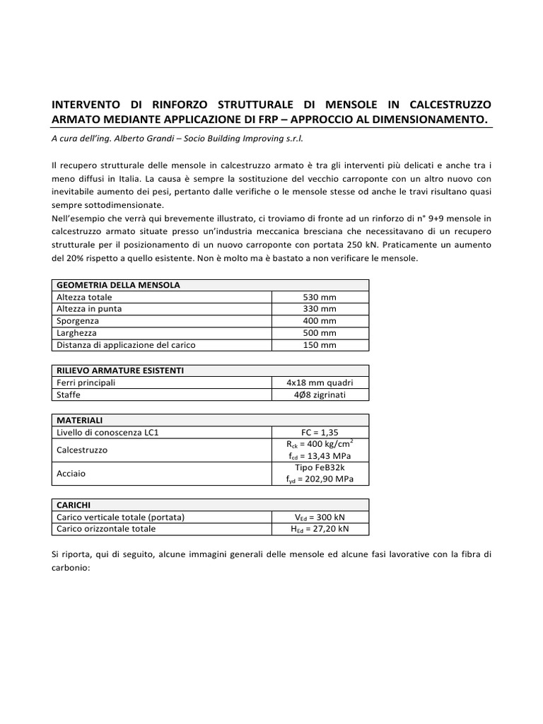 DI RINFORZO STRUTTURALE DI MENSOLE IN CALCESTRUZZO