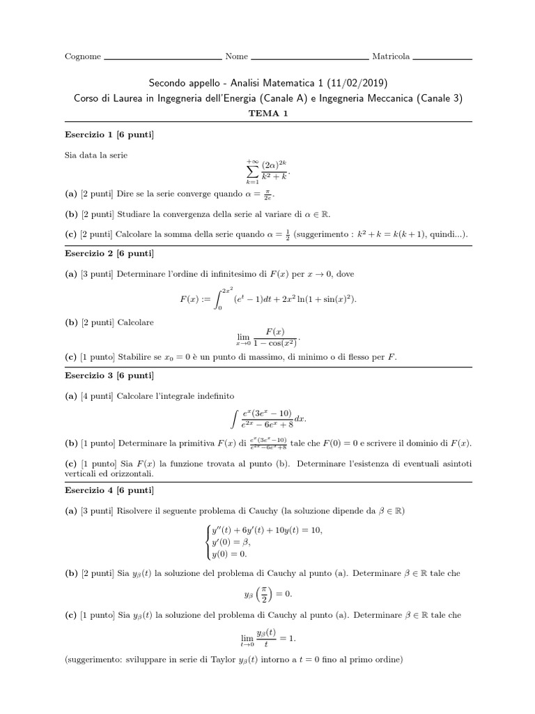 Secondo appello - Analisi Matematica 1 (11/02/2019)