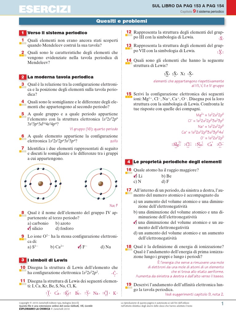 Capitolo 9 Il sistema periodico ESERCIZI