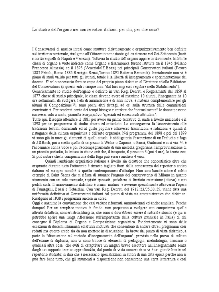 peraltro dalle affermazioni iniziali che così recitano: "Il corso d'organo intende formare musicisti