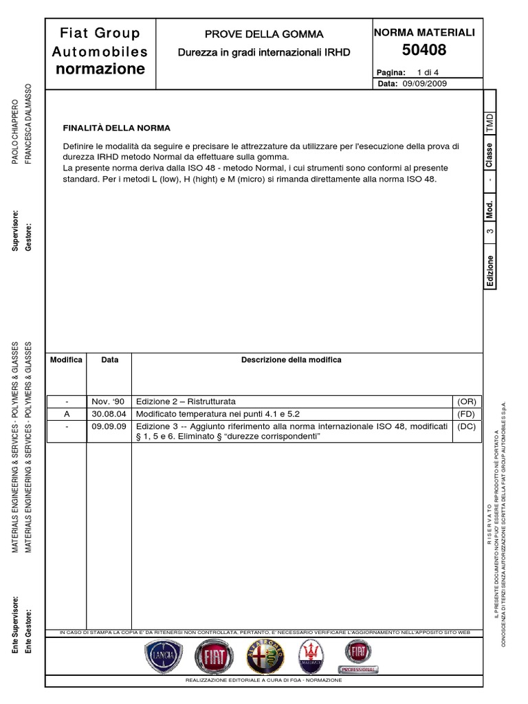 Fiat Group PROVE DELLA GOMMA NORMA MATERIALI