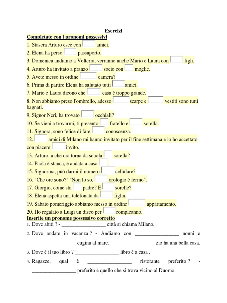 Inserite un pronome possessivo corretto