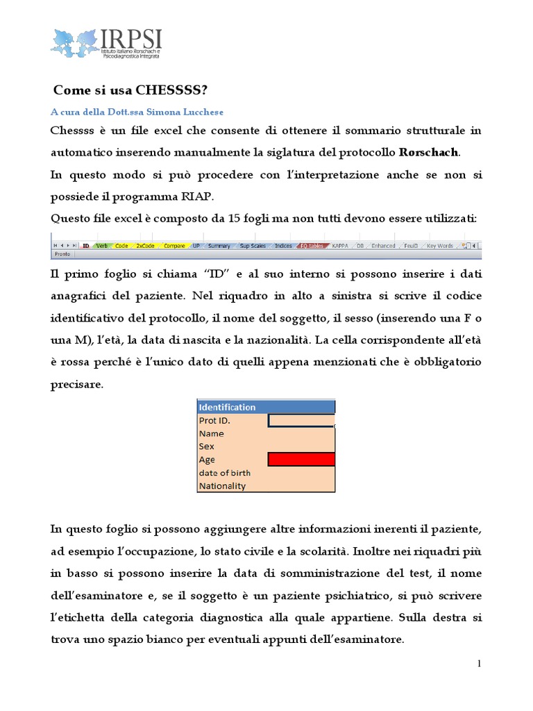 al sommario strutturale prodotto dal Chessss. Il riquadro deve contenere solo