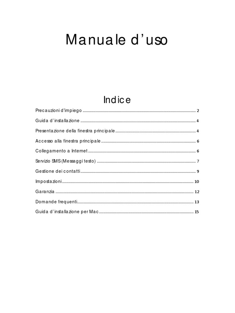 principale del prodotto. Si raccomanda, al primo utilizzo del modem, di