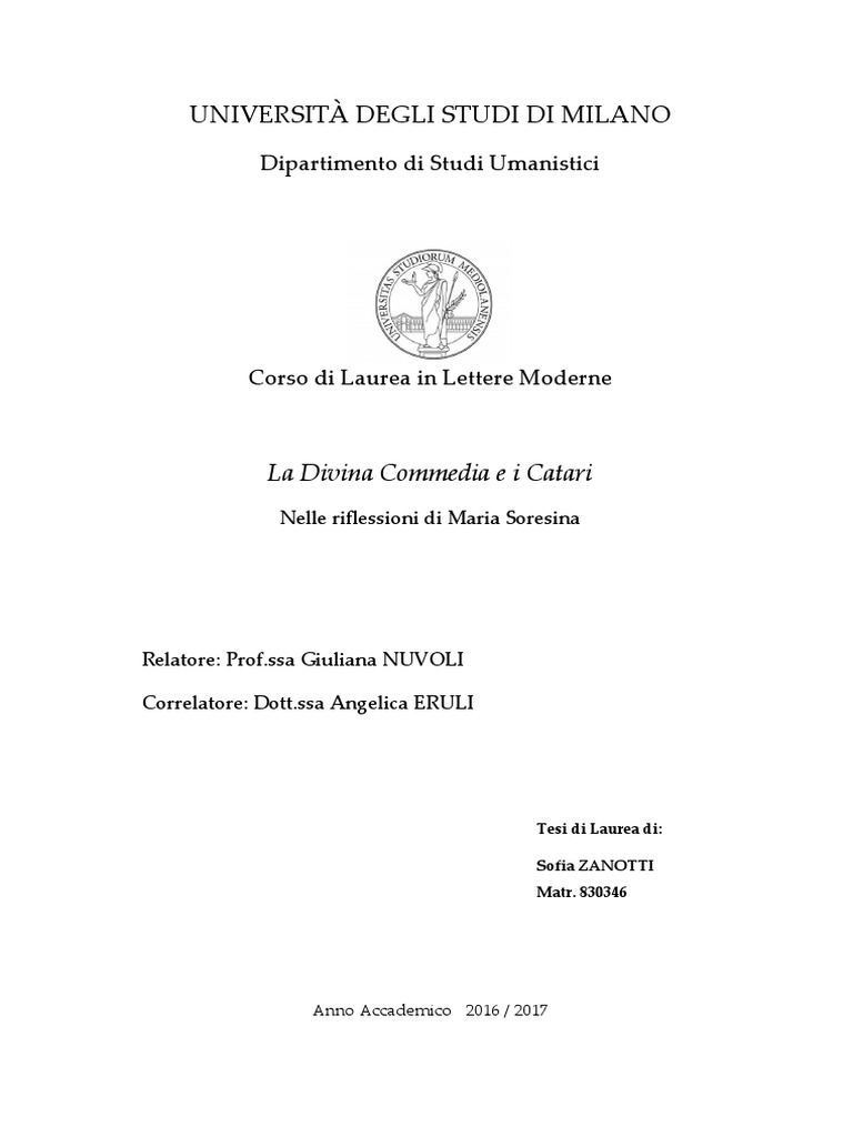 nesso fra il Catarismo e la Commedia di Dante rappresenta, a tutt’oggi, un