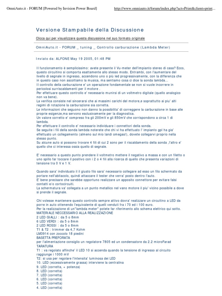 Per la realizzazione di un"lambda meter" potete far riferimento allo schema elettrico qui sotto.