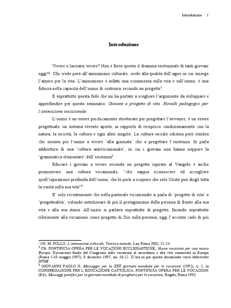 e infine mi soffermerò a vedere il legame tra vocazione e progetto di vita.