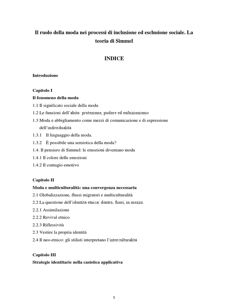della moda; 1.3.2 È possibile una semiotica della moda?; 1.4 Il pensiero di Simmel: le