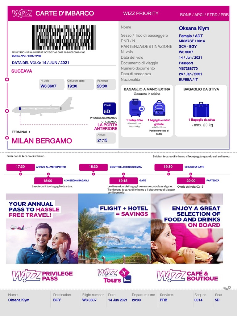 CARTE D'IMBARCO WIZZ PRIORITY BONE / APCI / STRD / PRB