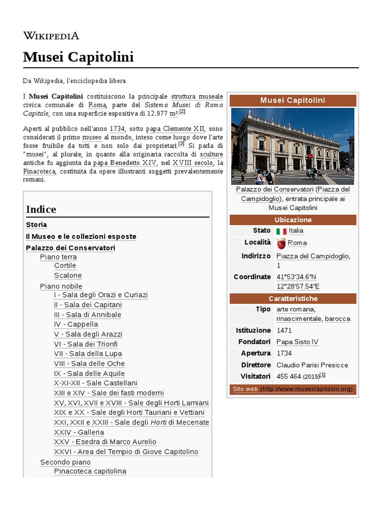 17. ^ fonte ilVelino/AGV NEWS, Roma: crescono del 13% i visitatori dei musei civici capitolini, su Il