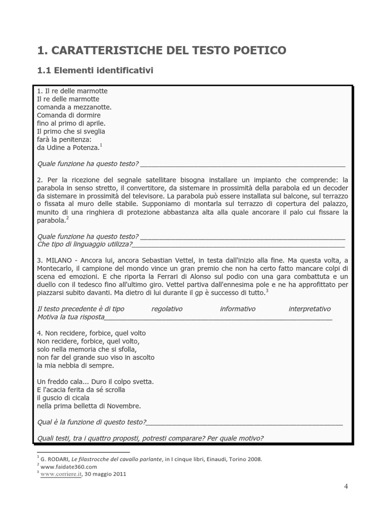 Se hai svolto correttamente gli esercizi precedenti, avrai accomunato i testi 1 e 4, anche se