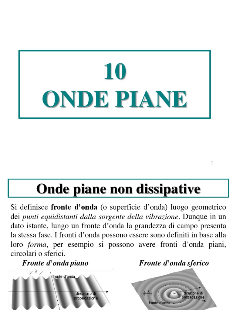loro forma, per esempio si possono avere fronti d’onda piani,