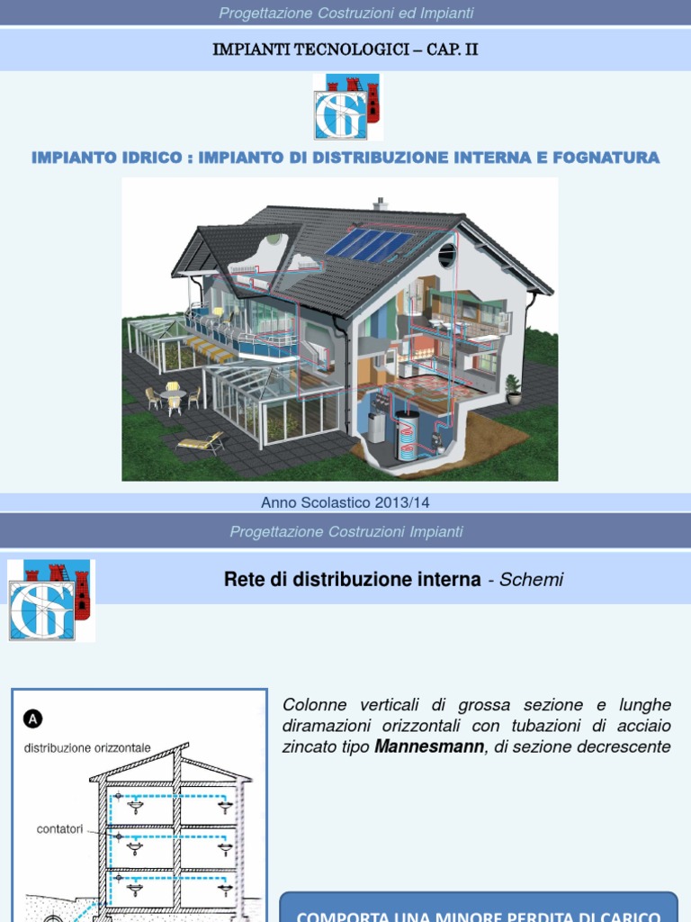 IMPIANTO IDRICO : IMPIANTO DI DISTRIBUZIONE INTERNA E FOGNATURA
