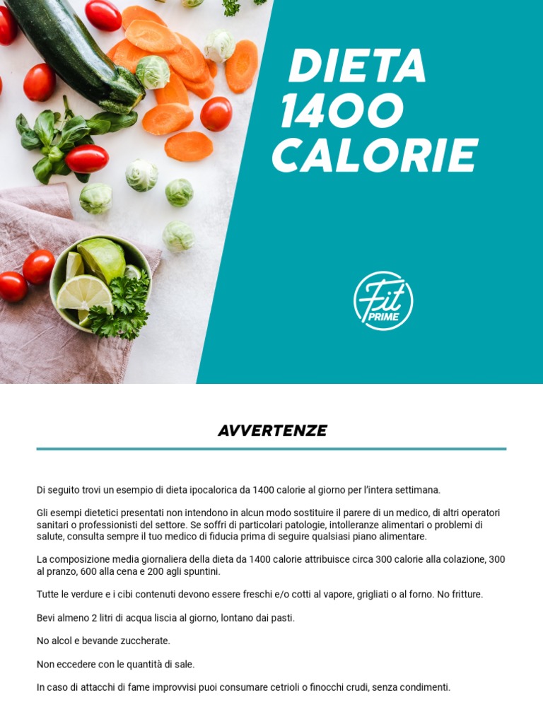 Di seguito trovi un esempio di dieta ipocalorica da 1400 calorie al giorno per l’intera settimana.