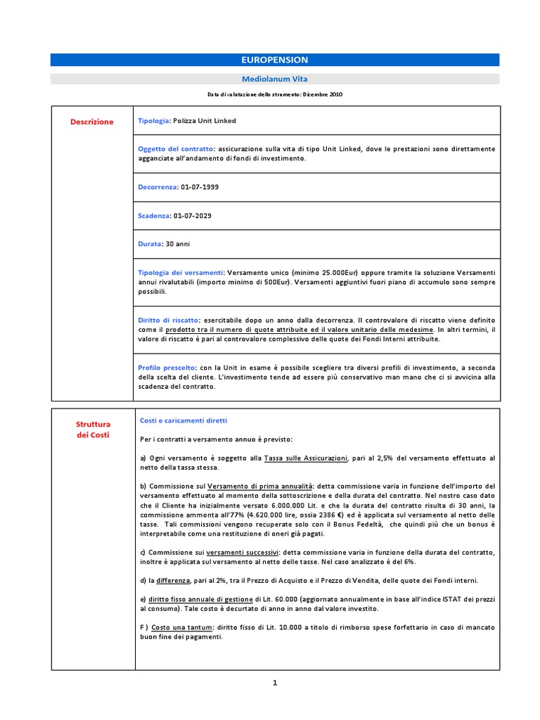 1549 Euro circa) e con una durata superiore ai 10 anni (la durata della presente polizza è di 30 anni)