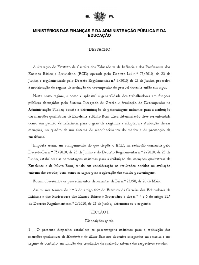 Ensinos Básico e Secundário (ECD) operada pelo Decreto-Lei n.º 75/2010, de 23 de