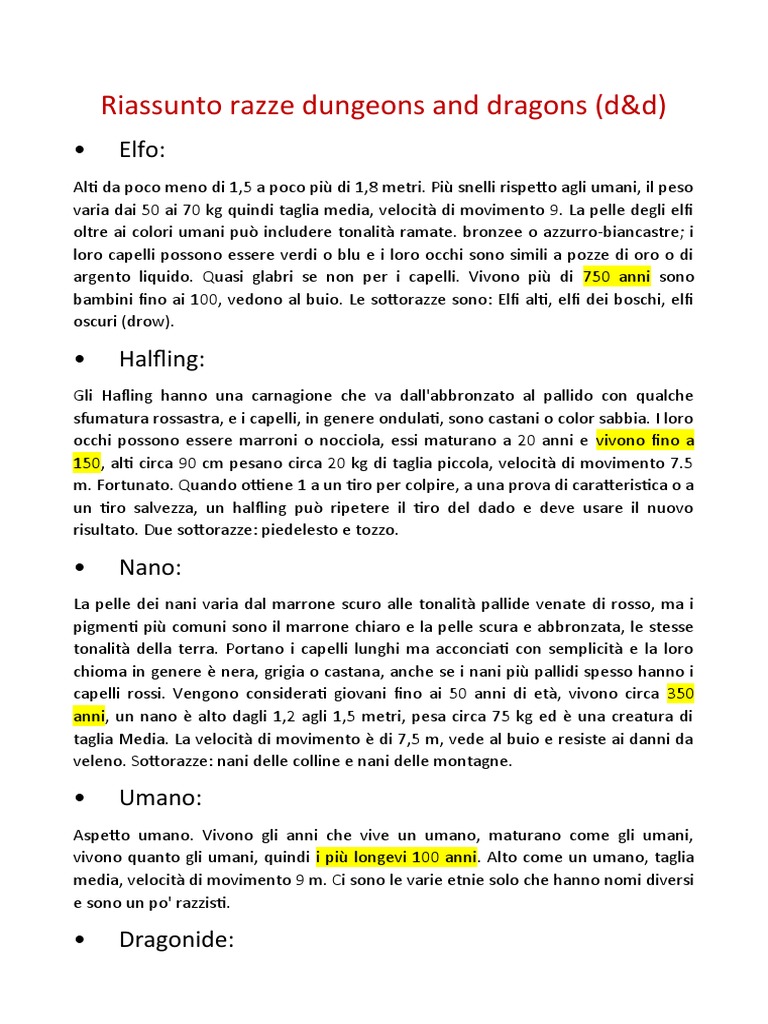 bambini fino ai 100, vedono al buio. Le sottorazze sono: Elfi alti, elfi dei boschi, elfi