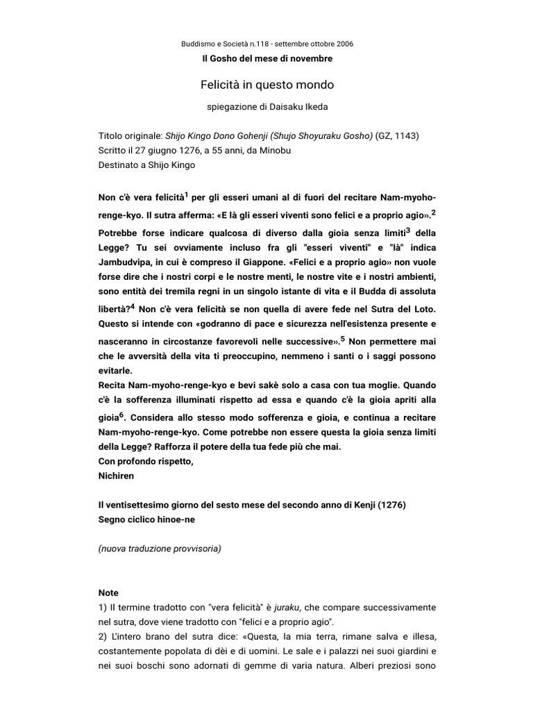 Non c'è vera felicità1 per gli esseri umani al di fuori del recitare Nam-myoho-