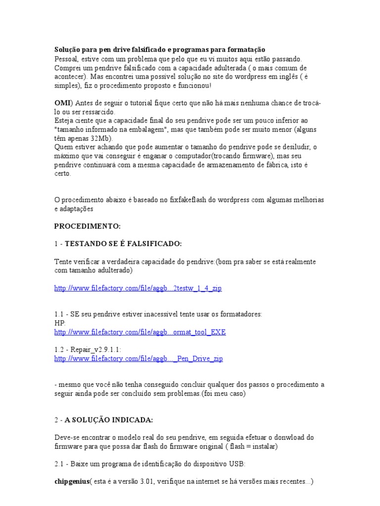 Esteja ciente que a capacidade final do seu pendrive pode ser um pouco inferior ao