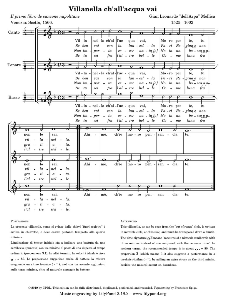 La presente villanella, come si evince dalle chiavi ''fuori registro'' è This villanella, as can be seen from the ''out of range'' clefs, is written