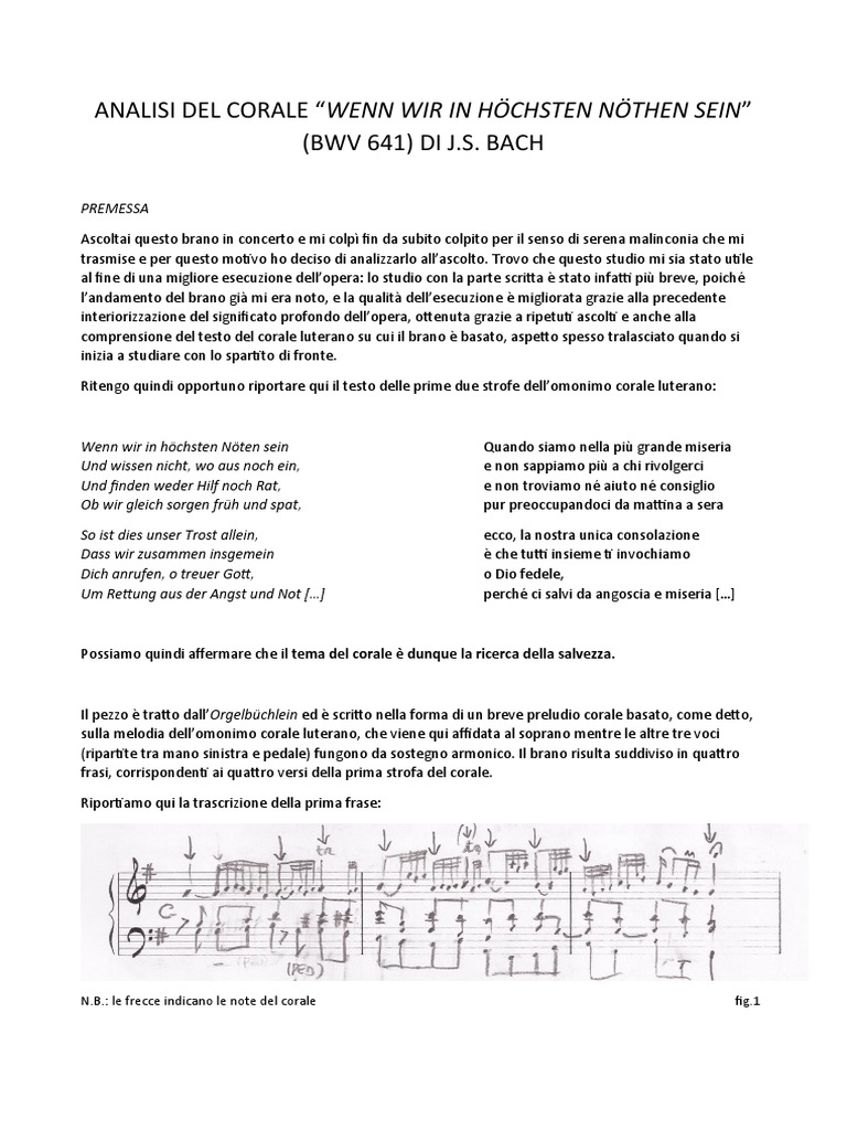 ANALISI DEL CORALE “WENN WIR IN HÖCHSTEN NÖTHEN SEIN”
