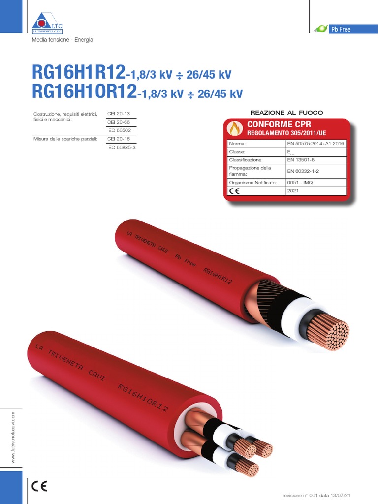 • Isolamento: gomma HEPR, qualità G16 senza