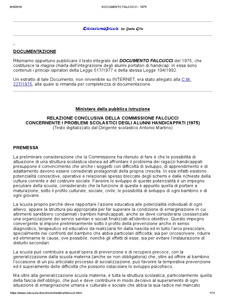 Riteniamo opportuno pubblicare il testo integrale del DOCUMENTO FALCUCCI del 1975, che