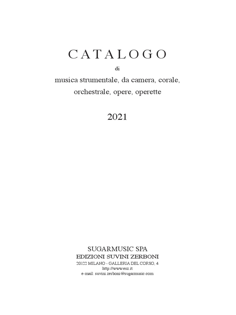 Der vorliegende Katalog der Edizioni Suvini Zerboni wurde am 31. Dezember 2020 abgeschlossen.