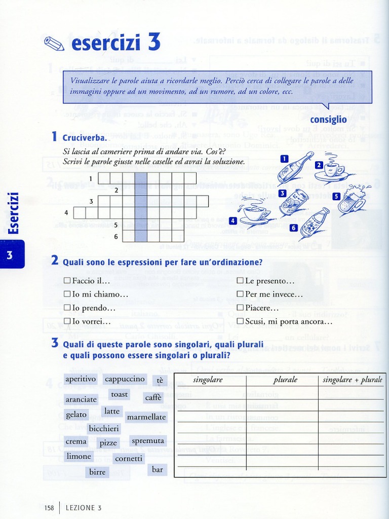 Sei in un locale italiano e vuoi bere e mangiare qualcosa, Scrivi come faresti Vordinazione.