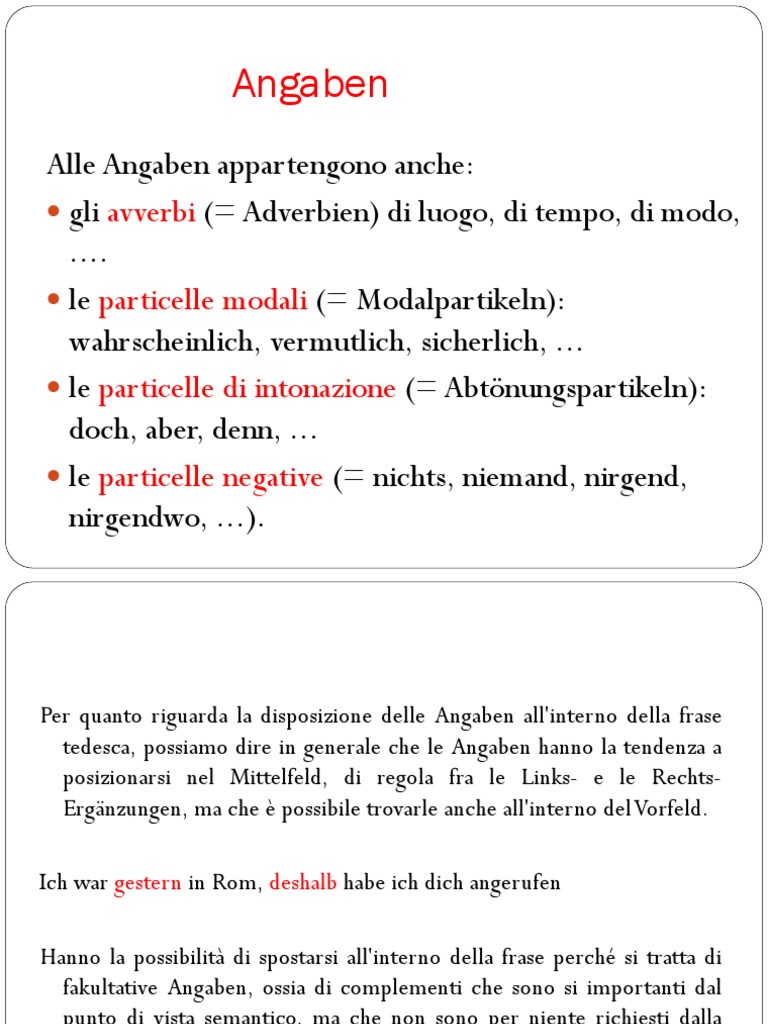 tedesca, possiamo dire in generale che le Angaben hanno la tendenza a
