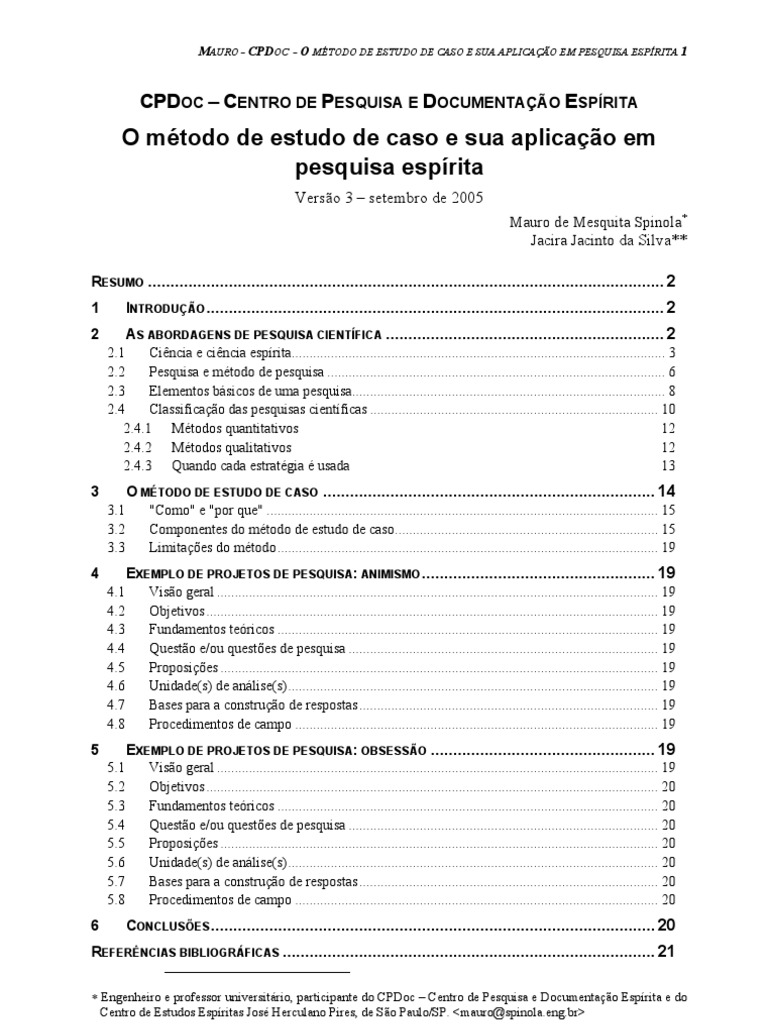 pesquisa e discute sua aplicação na pesquisa espírita, com ênfase no método de estudo de caso.