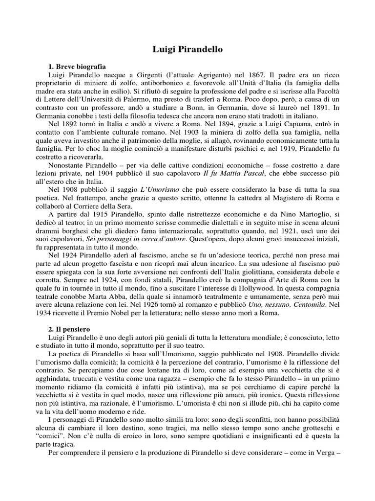 Luigi Pirandello è uno degli autori più geniali di tutta la letteratura mondiale; è conosciuto, letto