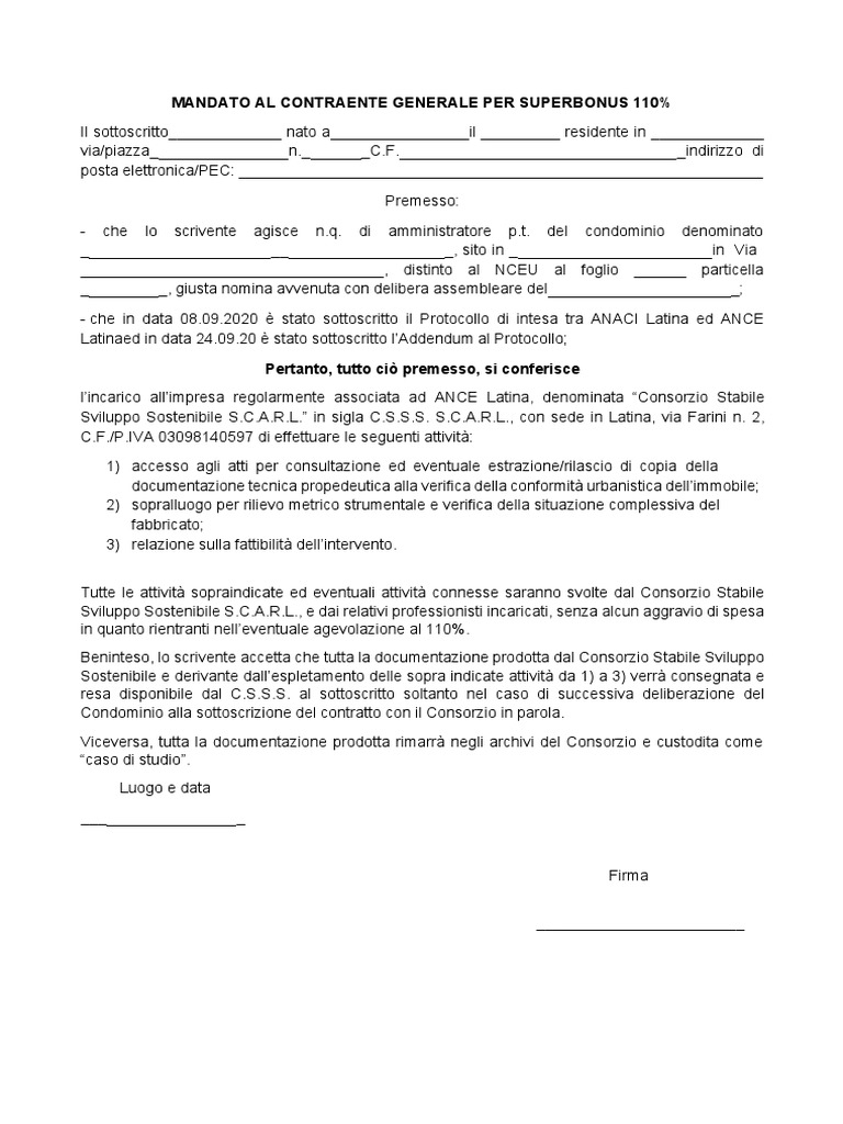 MANDATO AL CONTRAENTE GENERALE PER SUPERBONUS 110%