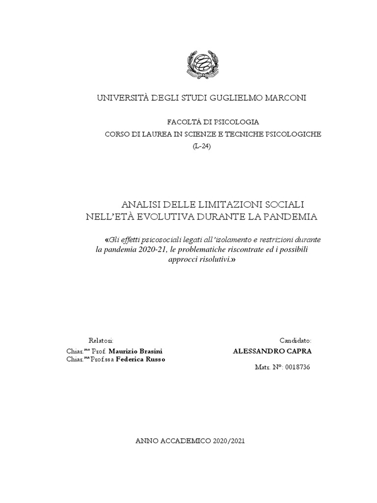 Chiar. Prof. Maurizio Brasini ALESSANDRO CAPRA
