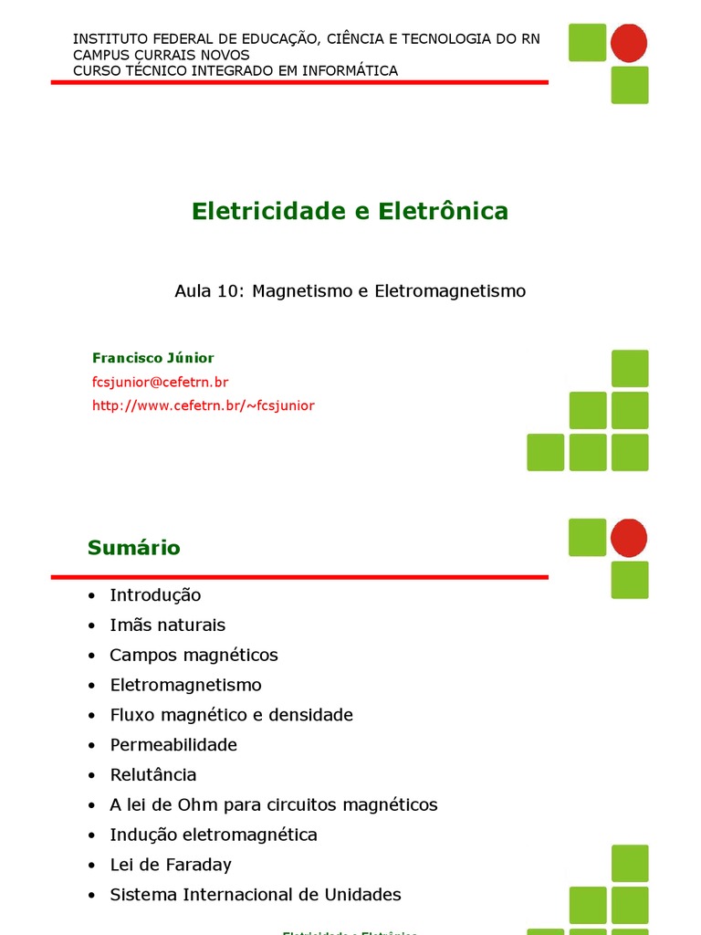 • F = força magnetomotriz (Ae), N = número de espiras e I =