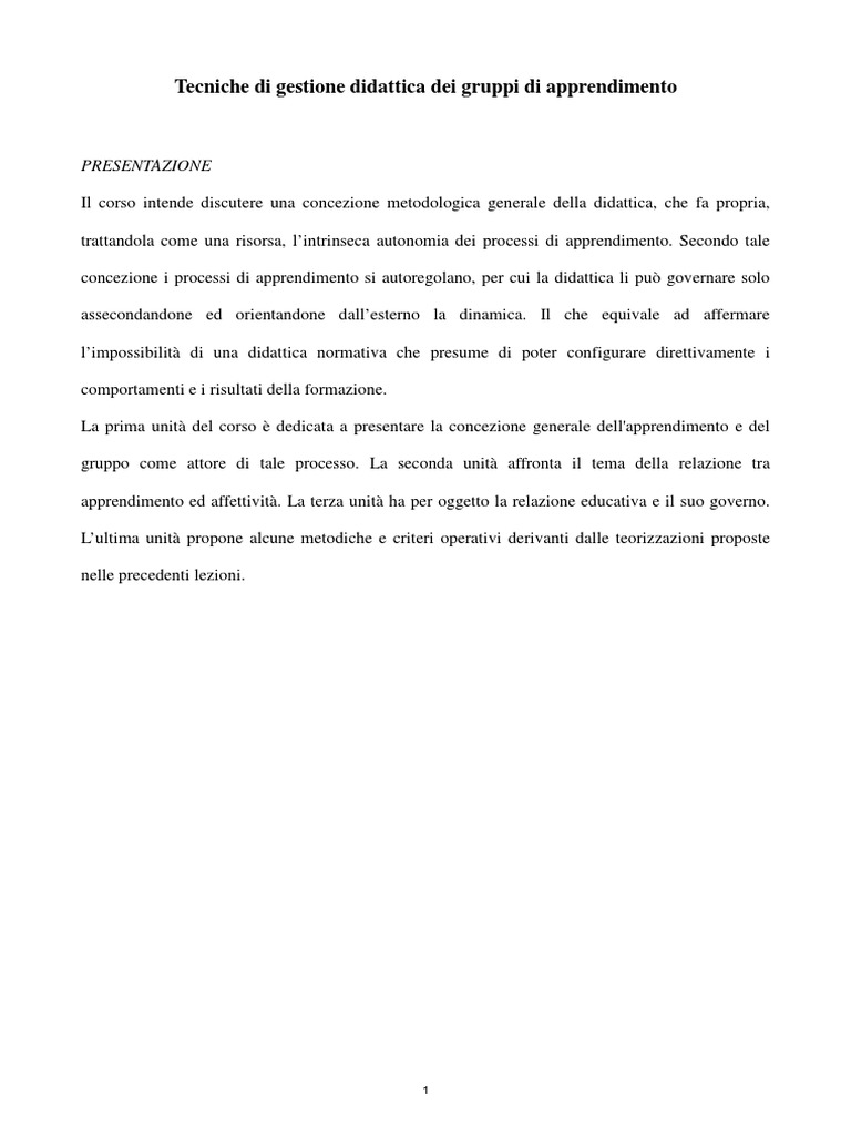 Il corso intende discutere una concezione metodologica generale della didattica, che fa propria,