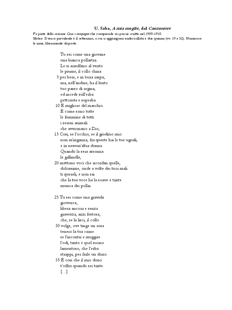 Metro: Il verso prevalente è il settenario, a cui si aggiungono endecasillabi e due quinari (vv. 19 e 52). Numerose