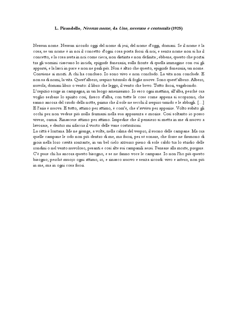 Pirandello, Nessun nome, da Uno, nessuno e centomila (1925)