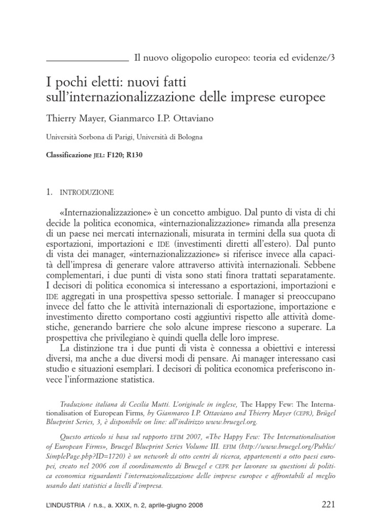 tionalisation of European Firms, by Gianmarco I.P. Ottaviano and Thierry Mayer (CEPR), Brügel