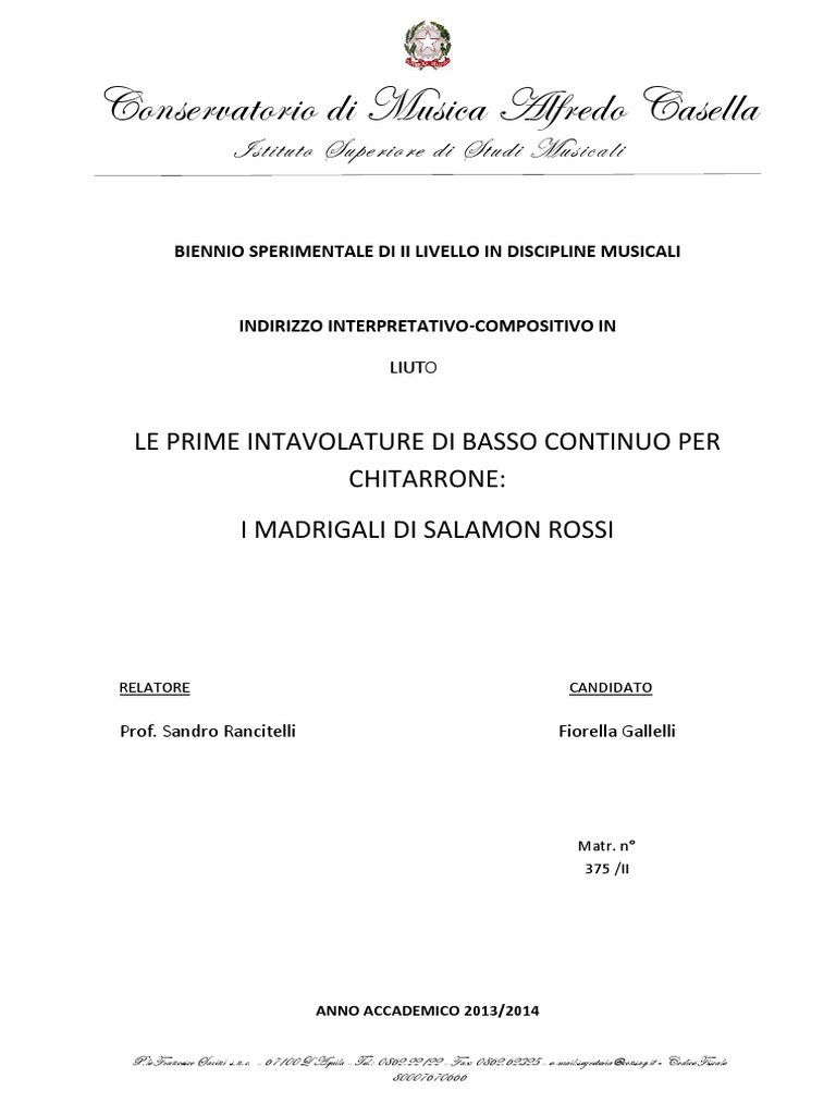 basso continuo ed alla messa a punto del Chitarrone quale strumento più atto