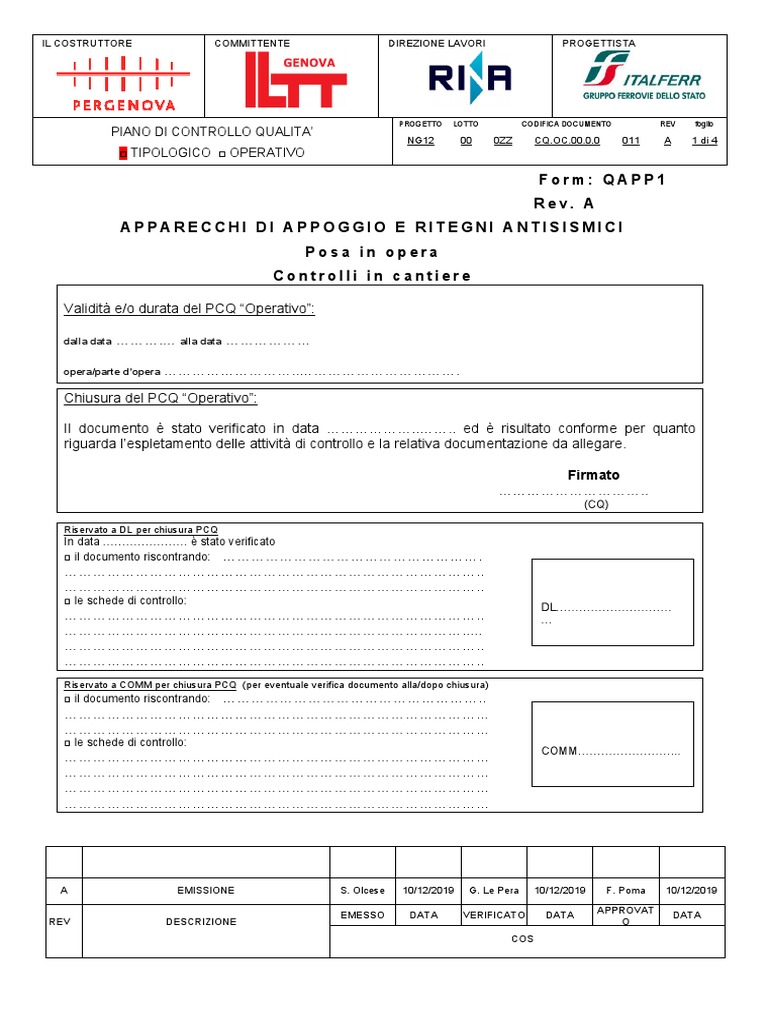 CODICE PCQ TIPOLOGICO: NG12 00 0ZZ [Link].00.0.0 011 A FORM: QAPP1